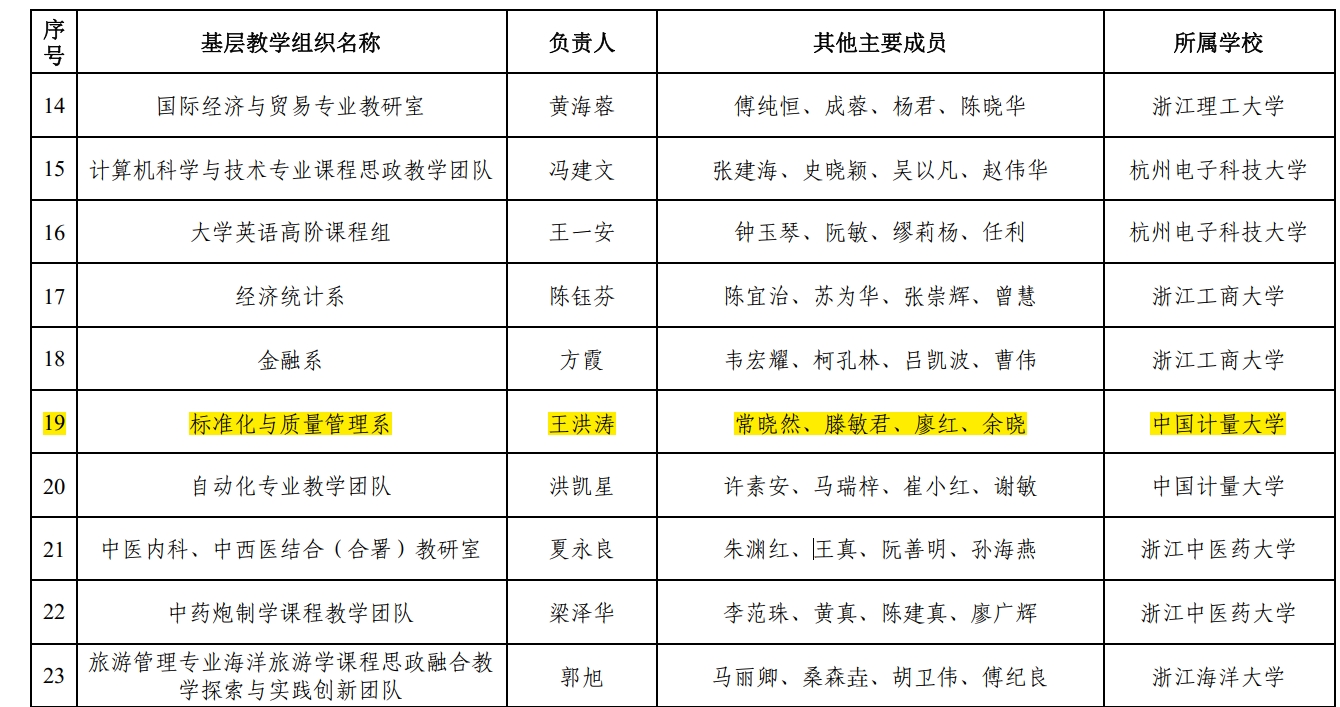 1.浙江省课程思政基层教学组织:标准化与质量管理系 //jyt.zj.gov.cn/art/2022/11/14/art_1228998760_58938719.html