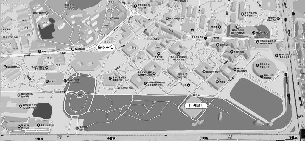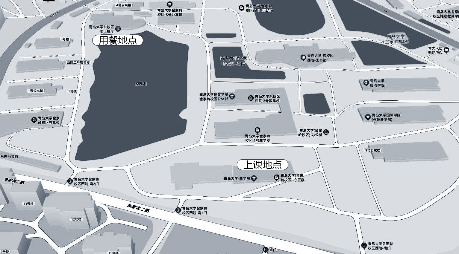 青岛大学金家岭校区培训中心及用餐地点位置示意图