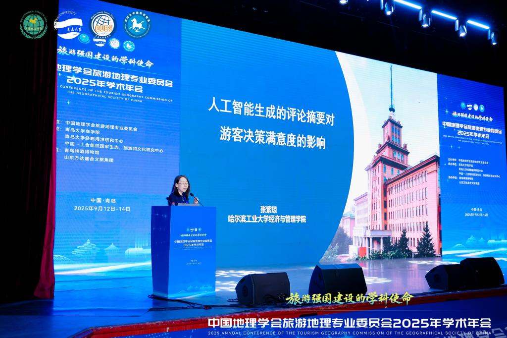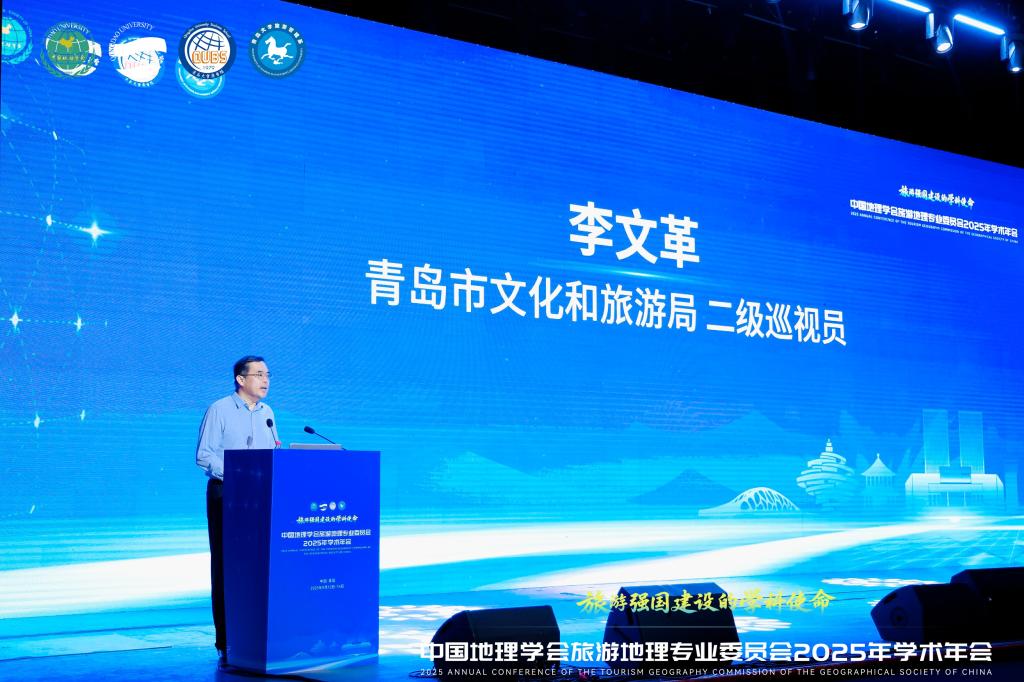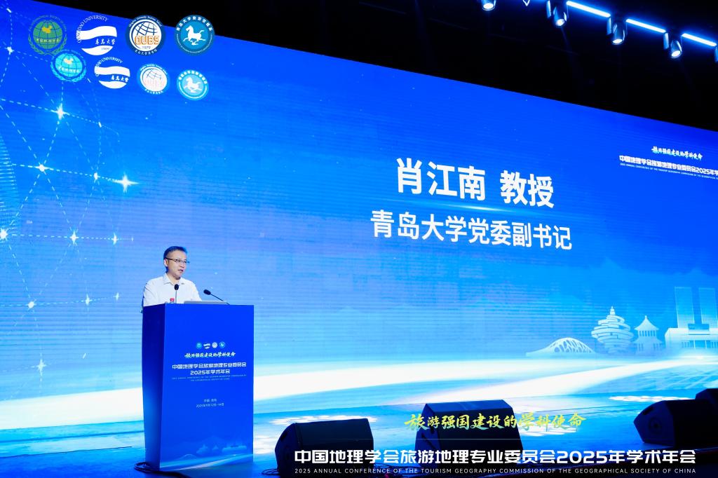 我校党委副书记肖江南教授在致辞表示,今天的青岛大学正在全面开启建设高水平综合性研究型大学的新征程。青岛大学旅游学科长期以来践行服务国家战略和区域社会发展的使命,形成了海洋与海岛旅游、乡村旅游、智慧文旅、旅游企业管理等研究方向,在一流人才培养、科学研究、师资队伍提升、智库平台建设、区域社会经济服务等方面取得了优异成绩。李文革二级巡视员在致辞中对大会的顺利召开表示祝贺,指出青岛大学旅游教育办学历史悠久,师资力量雄厚,为旅游行业培养了大批优秀人才,也为青岛市旅游产业发展提供了高质量的智力支持,是青岛市旅游智库的重要支持力量。徐红罡主任在致辞中表示,在国家建设旅游强国的战略进程中,旅游地理学科不仅提供了坚实的学理支撑和方法路径,更在推动经济繁荣、文化传承、生态文明和社会进步的有机统一中发挥着不可替代的作用。中国地理学会旅游地理专业委员会秘书长、南京大学地理与海洋科学学院张宏磊副教授做专委会2024-2025年度工作汇报。