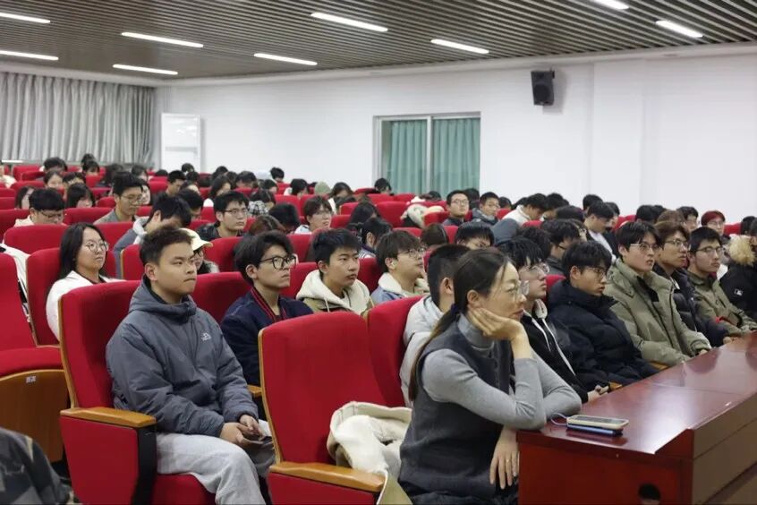 第一会场在图文中心三楼报告厅,由组织员魏强主讲,2025级工商管理和标准化专业共212名新生聆听了此次讲座。