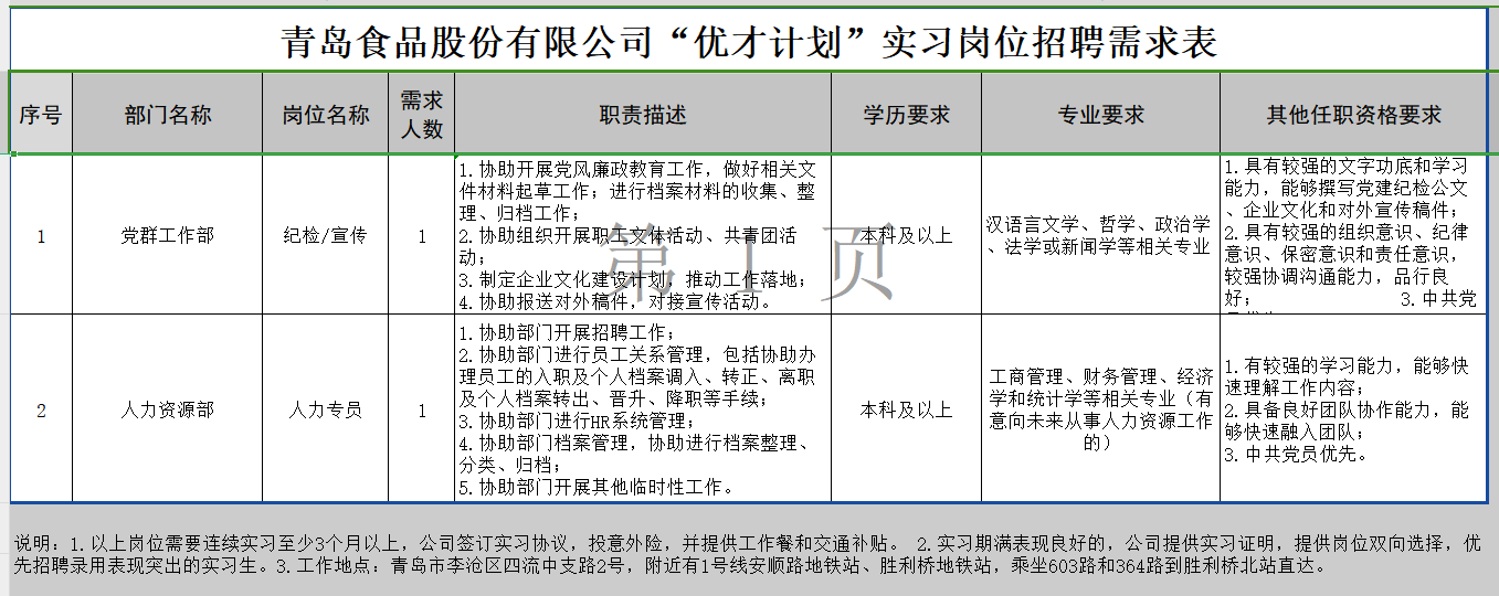 名企校招 | 青岛食品股份有限公司