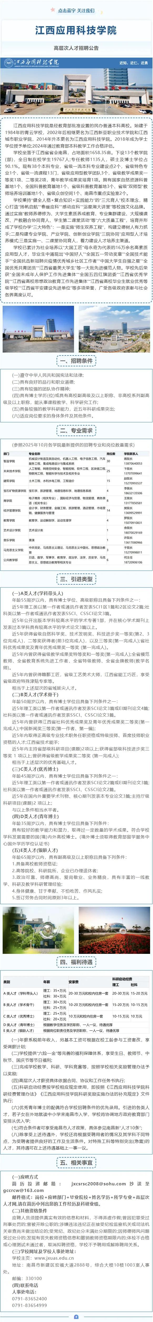 江西应用科技学院丨高层次人才招聘公告