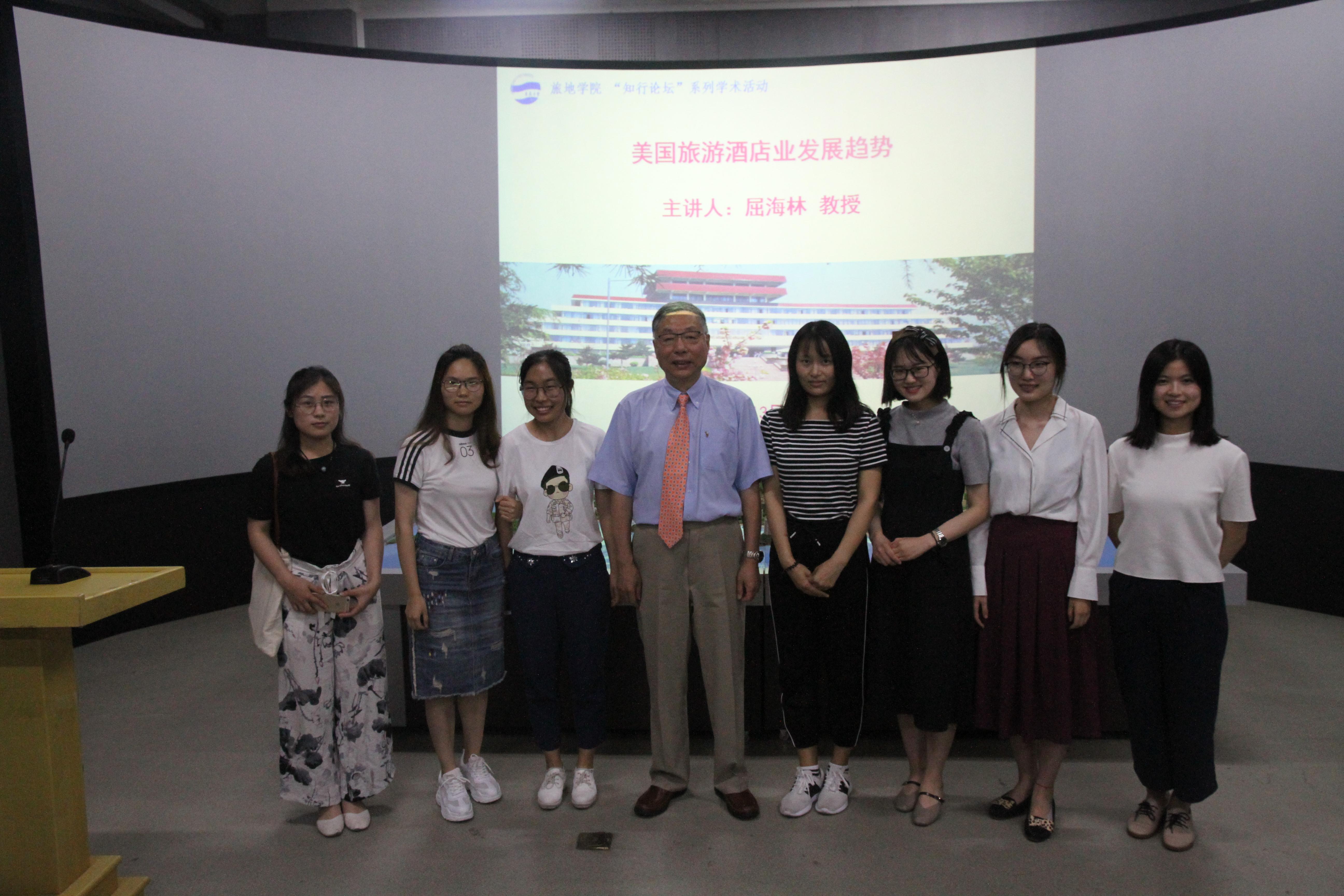 2018年6月13日下午两点,旅游与地理科学学院于青岛大学浮山校区静思楼2号旅游数字实验室举办“美国旅游酒店业发展趋势”学术报告会。本次学术报告特邀美国俄克拉荷马州立大学(Oklahoma State University)屈海林教授做学术交流报告,学院教师及学生代表参加了本次活动。