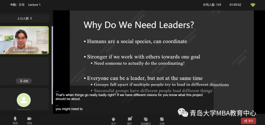 《领导力与组织人才管理-塑造领导力的核心准则》课程于10月14号正式开课,而《人类生活中消费等经济行为的心理学原理-行为经济学导论》于10月18号正式开课。两位教授知识渊博,平易近人且风趣幽默,授课方式采用英文讲授中文字幕,他们的上课课堂氛围愉悦,让同学们在轻松的氛围内学习到知识,教授在上课之前都会强调,如果在课程中有任何问题,可以随时举手进行提问,这种随时答疑解惑的教学态度给同学留下了深刻的印象,此外,两位教授总能了解到同学们的需求,对同学们提出的问题一一解惑,教授严谨的教学态度受到同学们一致好评,在课程结束时大家纷纷留言表达对教授的感谢。