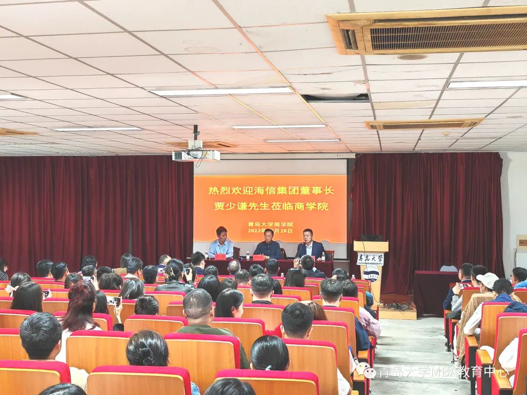 在讲座的最后,贾董事长向青岛大学和在场的同学们表达了他的感激之情。他表示,感谢青岛大学给予这次宝贵的机会,能够与同学们这些未来的商业人才面对面交流,分享海信集团的成功经验和先进理念,帮助大学更好地向社会输入具有敏锐洞察力、国际视野的复合型商业人才。此外贾董事长还表示海信集团的成功离不开广大消费者的支持。未来,海信将继续以创新、专业、诚信为核心价值观,致力于为全球消费者提供更好的产品和服务。
