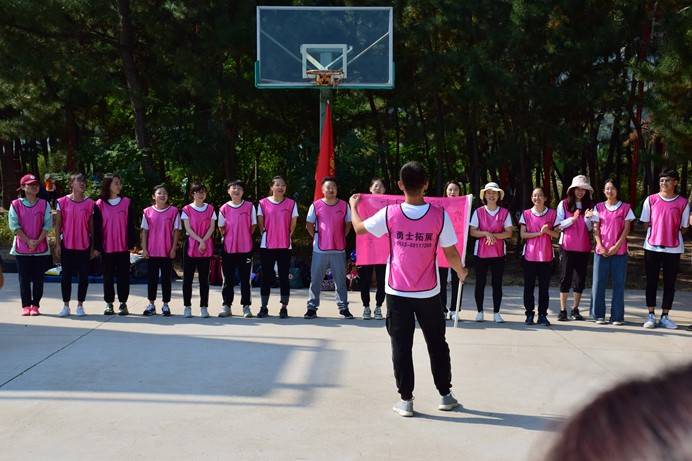 活动开展过程中,在教练的带领下被分为四个小组,经过各个小组队员的一番头脑风暴,一个个响亮的团队名称和团队口号,一首首嘹亮的队歌和富有特色的团队logo逐一精彩亮相,“泰山压顶”,“红色浪漫”等个性鲜明,充满力量的团队形象拉开了拓展的序幕。