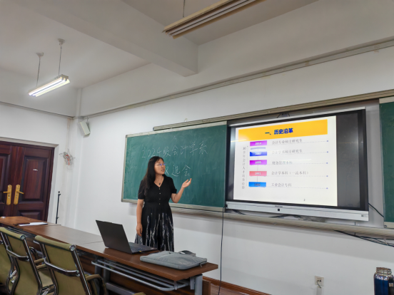 会计学系的基本情况,重点介绍了会计学系专业和学科建设情况、师资条件、研究成果等,并向同学们介绍了会计学系各位导师。